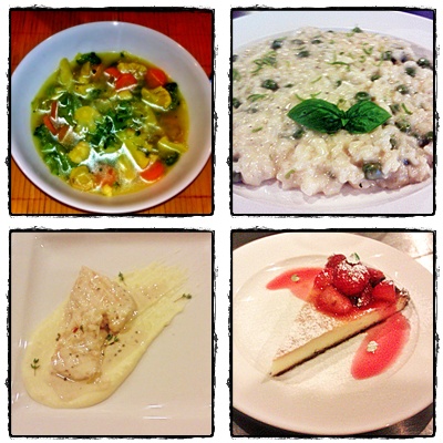 Ale poďme k Talianskemu menu – mali sme krásnu letnú minestrone, rissoto na tri spôsoby, kuracie steaky na smotanovej omáčke s parmezánovým pyré a úžasnú, ľahkú tortičku z ricotty a jahodovým chutney. Mňam mňam...